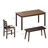 Orweiin 4-Piece Solid Wood Indoor Modern Rectangular Dining Table Set for 4 with Chairs and Bench,Table and Chairs Set with PU Leather Cushion for Kitchen,Bar,Living Room,Breakfast Nook,Brown