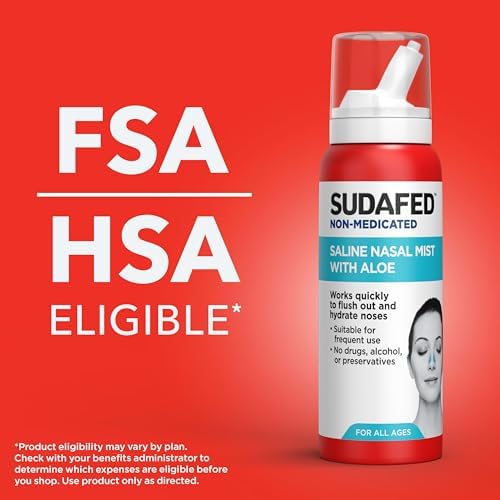 Sudafed Non-Medicated Saline Nasal Mist with Aloe, Sinus Saline Nose Spray for All Ages Quickly Flushes & Moisturizes Nasal Passages, Use Nasal Mist as Often As Needed, Drug-Free, 3 fl. oz