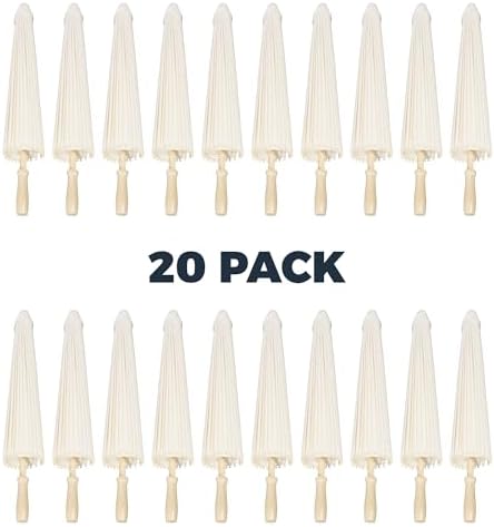 White Parasol Umbrella 20-Pack, 33" Parasol Umbrella Vintage, Oiled Paper Japanese Umbrellas for Women, Traditional Wedding Bridal Party Decor & DIY Crafts, Decorative Photo Props