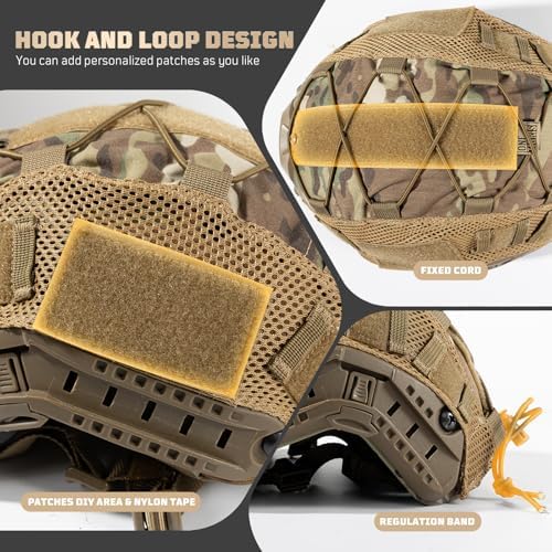- LARGE PATCH SPACES: With ample hook-and-loop panels on the combat helmet cover, proudly display your favorite patches and badges, adding a personal touch of style and enhancing team morale. Perfect for airsoft, tactical operations, paintball, shooting, and hunting