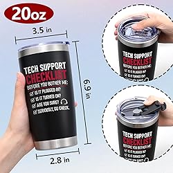 - Qtencas Tech Support Gifts for Men, Tech Support Checklist IT Helpdesk Hotline Travel Tumbler, Stainless Steel Travel Mug, Birthday Chistmas Gifts for Technician, Programmer, Tech Lover, 20oz Black