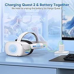 20000mWh Battery Pack for Oculus Quest 2: With a capacity of 20000mWh, for oculus quest 2 battery pack provides an extra 2-4 hours of playtime, no more worrying about the quest 2 running out of power, bringing you immersive VR gaming fun Charging Quest 2 & Battery Together: With the smart chip, Kinwin vr battery pack for oculus quest 2 supports charging Quest 2 and battery at the same time. It will charge the meta quest 2 headset first, and then charge the Kinwin battery pack. It is very convenient to avoid charging Quest 2 and battery separately. Perfect vr meta quest 2 accessories Safe and Fast Charging: UL 2056, CE, RoHS, FCC certified. Built-in low-temperature IC ice core, intelligent monitoring of voltage and current, actively avoid over-charge, over-discharge, short circuit, high temperature, creating a safe charging environment for you. With 10W input, charging for this meta quest 2 battery pack about 3hours Lightweight and Portable: Only 100g/3.5once, for vr oculus quest 2 accessories battery pack is super lightweight and portable, which is essential for VR headsets to avoid adding extra weight for your head Wide Compatibility: Designed specifically for the Meta Quest 2, the vr headset oculus quest 2 headphone jack is exposed but does not affect its normal use; it is installed with a sliding buckle, which is not easy to fall off and ensures safe use. Also suitable for charging other type-c devices What You Get: 1 x Kinwin battery pack for Oculus/Meta Quest 2, 1 x USB Charging Cable, and 1 x User Manual. Our professional and friendly customer service is always available