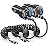 - [12V to USB C & USB A Car Charger] 4-in-1 multi port car charger designed with 2 USB-C and 2 USB-A charging ports, enable you to charge multiple devices at the same time. The USB-C PD 30w port can fast charge the high speed needed device, like Samsung Galaxy S24 S25Ultra S23 S22 Plus even Galaxy Tab S10+. The USB-A QC Port can rapid charge most android devices from 0% to 80% in 35 minutes.