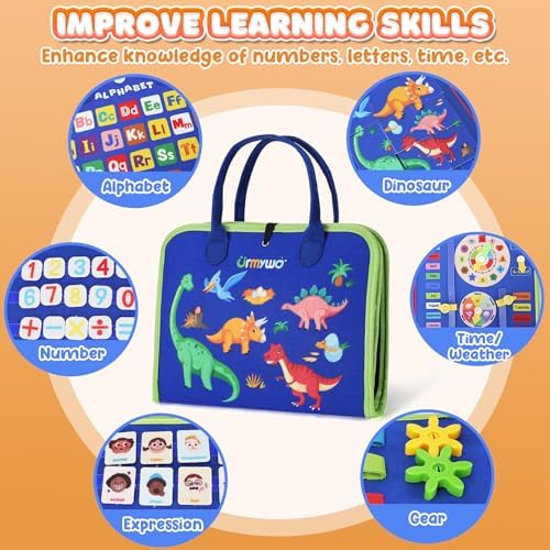 URMYWO Toddler Busy Board - Busy Book Montessori Toys for 1 2 3 4 Year Old - Preschool Learning Activities with Alphabet Number Animal, Educational Travel Toys Birthday Gifts for Kids