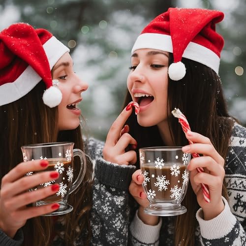 Sliner Set of 6 Christmas Snowflake Glass Coffee Mugs with Handle, 12 Oz Clear Coffee Mugs Footed Christmas Glasses Winter Holiday Mugs for Beverages Latte Hot Chocolate