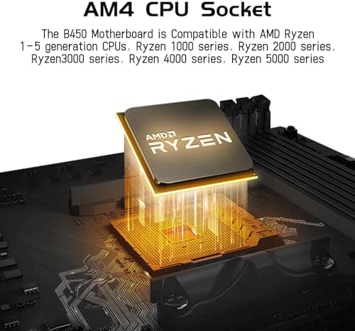 SHANGZHOAYUAN B450 AM4-K Motherboard AMD Gaming Motherboard for Ryzen 1-5th gen Processors (M-ATX, DDR4 Max 128GB, NVME M.2, PCIe 3.0, SATA 3.0, USB 3.0, HDMI-Compatible, DP, Gigabit LAN)