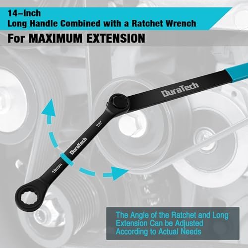 - SUITABLE FOR TIGHT SPACES: The 14" extension bar and 9" ratchet wrench in the belt removal tool kit are convenient for working in tight engine compartments. Whether you're dealing with limited space or hard-to-reach areas, this kit provides the flexibility you need for your job with ease.
