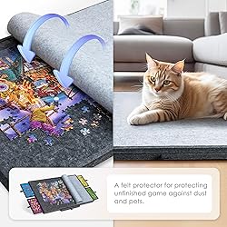 Lightweight & Portable - Tektalk 1, 500 pc puzzle board is processed out of premium felt fabric. Surface gives a good texture to ensure a good feel and immobilizes puzzle pieces. Felt protector is super lightweight and weighs only 6 lbs (2.7 kg), 35% ~ 50% lighter than traditional wooden puzzle boards. It allows you to move your unfinished game and continue your puzzle fun anywhere you like. 2-in-1 Design - Designed with an independent adjustable stand. Just set it up to support the puzzle board and store it inside the puzzle board like a drawer while not in use. Easy adjustments ensures you with endless puzzle fun by helping to avoid a stiff neck or stressed back. Felt Sheet Cover - Enclosed with a felt sheet protector to secure your unfinished puzzle game against dust and stop naughty pets from messing with it while you are taking a rest. 4 Colored Drawers - Designed with 4 colored drawers to sort out puzzle pieces as well as to preserve your unfinished puzzle game. Each drawer is designed with a handle for easy pulling out. Also stay closed when not in use and leave you no worry about missing pieces. Ideal Gift Choice - Tektalk felt puzzle board features a combination felt puzzle board and adjustable stand, lightweight and durable. Measures only 35.4 × 24.4 in and fits most 1, 500 pc jigsaw puzzle games. It is a perfect gift for puzzle lovers of all ages on birthdays, anniversaries, Christmas Day or other special days.