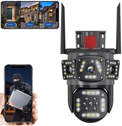 Davitech Camara De Seguridad, 2025 Best Outdoor Waterproof Wireless Wifi HD Security Camera, 6MP Auto Tracking 360 View Indoor Home Security Camera, Ip67 Waterproof, Color Night Vision (4 Lens)