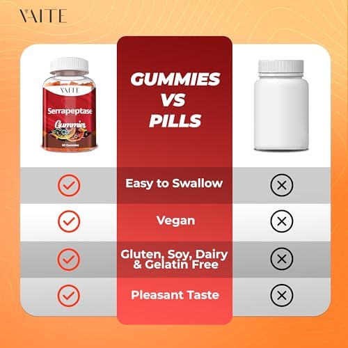 - OPTIMAL DIGESTION – Our serrapeptase supplement supports enzyme function and digestion. Enzymes vegan and gluten-free gummies enhance digestion, promote smoother digestion, and provide lasting comfort while supporting enzyme efficiency