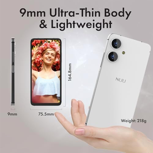 NUU N10 Basic Cell Phone for T-Mobile, Mint, Metro, Qlink, Tello and More 4GB/128GB, Perfect for Teenagers, Dual SIM 4G, Octa-Core 6.6" 90Hz HD+, Unlocked Phones Android Phone 14, US Warranty (White)