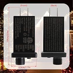 - 29V LED Transformer 8 Modes & Memory Functions 8 Light Modes: combination, steady, wave, sequence, slow fluorescent, chase flash, slow fade, spark flash, and switch modes by pressing the button on the transformer. Memory Functions: The memory chip stores your last mode setting, so there's no need to reset the mode every time. Specifications: Package: 1× US 29V 6W LED Adapter Rated Watts: 6W Waterproof: IP44 Output Voltage: DC29V, 207mA Input Voltage: AC100V-120V, 50-60Hz 0.3A Certification: GS, VDE, ETL, CE Item Size: 9*3.5*2.5cm/3.5*1.4*1in Weight:50g/0.13lb/1.76oz Functional LED Adapter Our LED transformer is designed for Low Voltage Devices, such as Holiday Decorative Lights, String Lights, Projector Lights, and Lawn Lamps. All of our LED transformers conform to US and CA standards UL8750:2015Ed.2+R:23Nov2016, CSA C22.2#250.13:2014