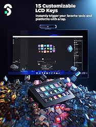 - The Soomfon Stream Controller is a versatile stream control deck designed for creators who want faster, smarter workflow control. With 15 customizable LCD keys, this stream controller deck lets you trigger actions for streaming, editing, audio control, lighting, and more—all with a single touch. Each key features a personalizable LCD screen, while the side dashboard gives you real-time CPU and memory info for smooth performance. Compatible with PC, Mac, OBS Studio (27.0.0+), Twitch, YouTube, Discord, Spotify, Philips Hue, and other leading platforms, it’s easy to set up and use. The detachable stand and non-slip base provide flexible placement and stability, and USB connectivity ensures instant plug-and-play operation.