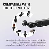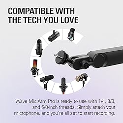 Low Profile: Wave Mic Arm Pro features superior suspension technology for ultra-smooth, silent adjustments; It’s compatible with a wide range of mic brands and models, including Sennheiser, Audio-Technica, HyperX, Rode, Shure, Neumann, and many more High Load Capacity: Supports up to 3 kg/6.6 lbs, including accessories Gas Spring Suspension: Smooth, silent adjustments without loosening screws Hidden Cable Channels: Strong magnetic covers keep cables out of sight Secure Mount: Padded clamp fits desks up to 60 mm / 2.4 inches thick