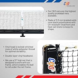 - The C & D Pickleball Nets Surface Mount Net System is engineered for superior durability and performance, making it the perfect choice for indoor and outdoor courts. Featuring heavy-duty 11-gauge steel tubing, aluminum caps, and stainless steel fixing pins, this net system is built to last. The net, made from 3.5 mm UV-resistant braided polyethylene, includes a double-layer vinyl headband for added durability. With a 31” high design, this net allows the ball to roll under, enhancing gameplay. Complete with a brass internal winder and non-recoiling worm gear, this net system offers precise tension control. Custom colors are available to suit your court’s needs.