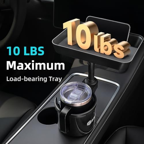 DYLEN Car Cup Holder Tray, Cup Holder Expander Adapter for Car, 9.5” Detachable Car Food Tray Table for Eating, Road Trip Essentials Fits Yeti, Hydro Flask 16-46 oz