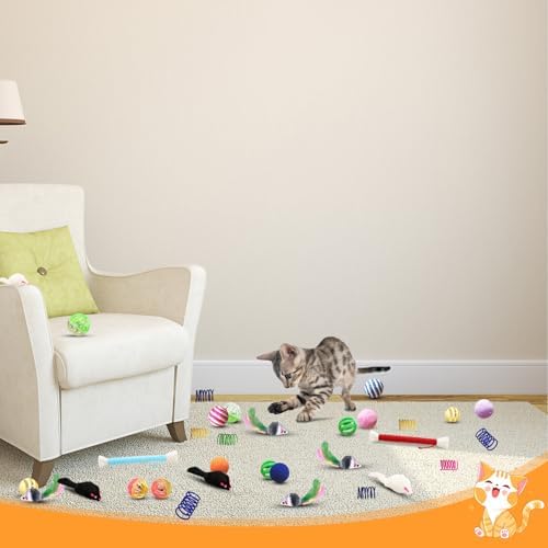 - [Warm Tips]: Our mixed cat toys come in 34 pcs and colors will be issued randomly. 🐱