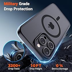 Super Magnetic Attraction: Powerful built-in magnets, easier place-and-go wireless charging and compatible with MagSafe Compatibility: Only compatible with iPhone 15 Pro Max; precise cutouts for easy access to all ports, buttons, sensors and cameras, soft and sensitive buttons with good response, are easy to press Matte Translucent Back: Features a flexible TPU frame and a matte coating on the hard PC back to provide you with a premium touch and excellent grip, while the entire matte back coating perfectly blocks smudges, fingerprints and even scratches Shock Protection: Passing military drop tests up to 10 feet, your device is effectively protected from violent impacts and drops Check your phone model: Before you order, please confirm your phone model to find out which product is right for you