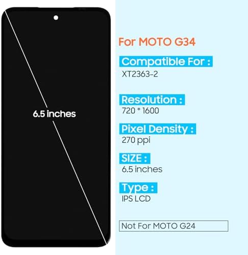 - For Motorola Moto G34 LCD Screen Replacement: Our LCD screen replacement for Motorola Moto G34 is only compatible with Motorola Moto G34 XT2363-2 models. Please ensure that your cellphone model number matches before placing an order.