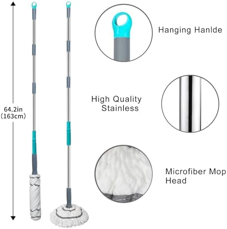 - 【Easy to Wringing Twist Mop】Wring mop cleaning your floors is now easier with this self-wringing mop for floor cleaning. Just pull the handle up, twist, and push down to drain all water from your mop for an effortless clean
