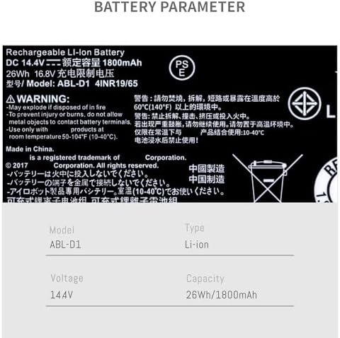ABL-D1 Battery for iRobot Roomba e e5 e6 e5150 e5152 e6198 and i Series i3 3150 i3+ 3550 i4 4150 i4+ 4552 i6 I7 i7158 i7+ 7150 7550 J7 J7+ i8 Plus Vacuum Replacement 4624864 4INR19/65 1800mAh/26Wh