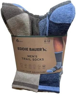 Eddie Bauer Men's Trail Socks - 6-Pack Sizes 6-12