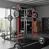 【2000LBS Heavy-Duty Steel Construction】: The GOIMU S1 Smith Power Cage supports up to 2000LBS of weight, ensuring superior stability and safety for intense workouts. Every component, including the attachments, is designed for durability and strength. Overall dimensions are 59.84"L x 46.85"W x 84.25"H with 21 one-inch holes, it provides ample exercise space. Experience the same level of quality and performance you'd expect from a commercial gym, right in the comfort of your own home. 【Home Gym Station】: The GOIMU S1 integrates a Smith machine, power cage, and fuctional trainer system into one versatile unit, featuring 10 height-adjustable pillars and additional accessories. This all-in-one Smith Machine supports a wide range of exercises, including squats, bench presses, deadlifts, lat pulldowns, cable crossovers, and more. It’s the ultimate solution for full-body strength training, eliminating the need for multiple machines. 【Great Bang For Buck】: Transform your space into a full-body workout station with over 25+ accessories, including a tricep rope, T-bar, pull-down bar, counterweight racks with clamps, and a 360-degree landmine attachment. A bonus accessory to enhance your training program. Despite its robust build, this power cage only occupies 17.88 square feet of floor space, making it perfect for apartments, garages, or small home gyms. 【Versatile High-Low Cable System】: Enjoy smooth and consistent resistance with our premium cable system, engineered for top-notch performance. The cable crossover system features a slide rail design and stainless steel composite materials, delivering a durable and seamless operation. Whether you're performing low crossovers, high crossovers, mid crossovers or more, this system ensures a reliable and effective workout. With this pulley system, you can perform nearly all cable-based exercises. 【Professional Smith Attachment System】: The S1 Smith system uses a linear bearing design and is equipped with 2 professional hook protection. It has a high weight capacity of up to 1000 lbs and offers 10 selectable heights, guaranteeing a safe and stable workout experience. 【Goimu Support】: Our products are shipped in 3 boxes and undergo strict quality inspection before shipment. We stand behind our product with a 2-year warranty, giving you peace of mind as you invest in your fitness journey. Easy to assemble with illustrative manual and all the necessary hardware included. Please feel free to contact us with any of your concerns.