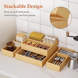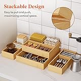 Lifewit Drawer Organizers 5 Pack(11 Grid) with 6 Inserts, Adjustable Bamboo Wooden Drawer Dividers, Stackable Storage Box for Utensils, Silverware, Makeup, Junk in Kitchen/Bathroom/Office/Vanity