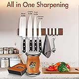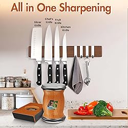 - Upgrade your 5 sided rolling knife sharpener experience with the EverGrove Knife Sharpener Roller Kit – the ultimate manual sharpener for home cooks and professionals. Featuring dual diamond-coated sharpening discs (400 & 1000 grit), this diamond rolling knife sharpener set effortlessly hones and polishes dull blades to razor-sharp precision. The adjustable angle guide (15°, 18°, 20°, 22°) ensures accurate sharpening for all blade types, from delicate chef knives to thick utility blades. Unlike ordinary sharpeners, our rolling knife sharpener tool design offers four-sided magnetic support for steady and secure sharpening. The built-in central magnet holds the knife & best scissors sharpening roller in place, eliminating slips for consistent results. The knife sharpener tool rolling knife sharpener kit features a solid wood base with built-in bearings, ensuring smooth and easy rolling. Its ergonomic grip and non-slip rubber wheels provide effortless operation, while the silicone pad secures even narrow blades for precise sharpening. Compact and portable, this rolling knife sharpener kit 5 side requires no electricity, making it ideal for kitchens, workshops, and outdoor use. Whether restoring a chef knives, hunting knife, or kitchen blade, the knife sharpening kit for pocket knives guarantees professional results in minutes. Simply attach the knife to the magnetic holder, roll the knife sharpener tool rolling, and enjoy effortless precision sharpening. Join many of happy customers who trust EverGrove for high-quality sharpening tools. rolling knife sharpener 5 angles Perfect for home kitchens, outdoor enthusiasts, and professional chefs, this wooden rolling knife sharpening tool saves time and money while delivering ultra-sharp results.