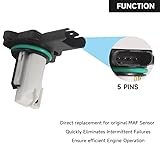 - Function - Mass air flow sensors play a vital role in ensuring that the engine receives the proper amount of air and fuel mixture for efficient combustion and power output. This Mass Air Flow Sensor is designed to match the function and form of the original one, exactly OEM design to replace your old worn parts, high-quality materials,professionally manufactured, more wear resistant and durable. Replacing a new MAF Sensor can improve fuel efficiency and reduce emissions, to improve idling instability, poor acceleration, ensure your vehicle performs with optimum levels of safety.