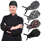 4 Pack Adjustable Tie Back Chef Cap - Breathable Cooking Kitchen Hat for Women & Men