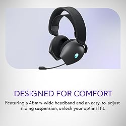 Designed for comfort: Featuring a 45mm-wide headband and an easy-to-adjust sliding suspension, unlock your optimal fit. Spacious. Breathable. Soft. Boasting spacious ear cups and soft, memory foam pads covered in breathable fabric, long gaming sessions are a breeze. Immersive gaming audio: Equipped with Dolby Atmos, a technology capable of creating a three-dimensional audio environment, so you can play with precision. Personalize your lighting: AlienFX syncs with Alienware Command Center* to provide a customizable array of RGB lighting. *AWCC support available on AWCC V6.4.X or later. Hear every detail: 40mm Hi-Res Certified Drivers deliver a wider range of frequencies, ensuring you’ll catch every footstep crisply and clearly. Compatible with Alienware AW720M Tri-Mode Wireless Gaming Mouse andAlienware AW920K Tri-Mode Wireless Gaming Keyboard.