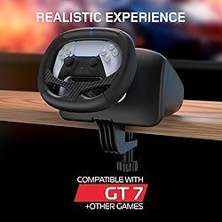 IMPORTANT: This product is a mechanical steering wheel dock that requires a DualSense or DualEdge controller and is compatible only with motion sensor games such as Gran Turismo 7. It is not a standalone electronic steering wheel and will not work without a compatible controller or game. Please ensure your game supports motion sensor functionality before purchasing. COMAPTIBLE GAMES: Gran Turismo 7, My First Gran Turismo, Gran Turismo Sport, Drive Club, Project Cars 220 DEGREE STEERING WITH AUTO CENTRING MECHANIC: Enjoy precise and responsive steering with a 220-degree rotation, ensuring your wheel snaps back to centre for optimal control. AUTHENTIC GRIP & DUAL METAL BEARINGS: Feel like you’re in the driver’s seat with an authentic grip that mimics the feel of a real racing wheel. Experience smooth, frictionless steering, thanks to high-quality dual metal bearings. 360-DEGREE ERGONOMIC GRIP: Designed for comfort during extended gaming sessions, the 360-degree ergonomic grip keeps you in control lap after lap.