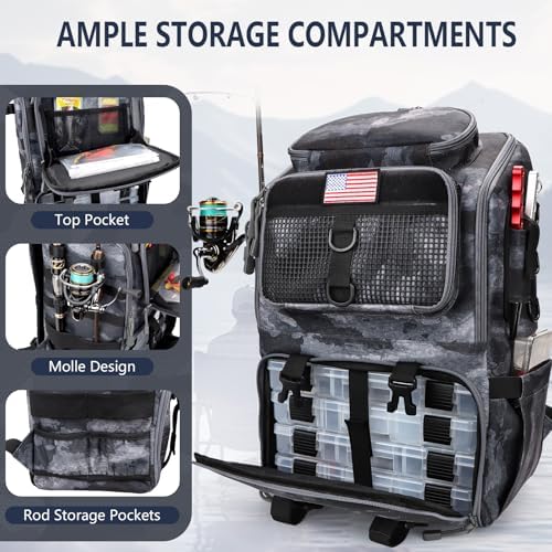 - Durable & Water-Resistant: Made for the avid angler, this fishing backpack is built to withstand tough conditions. The water-resistant material ensures your gear stays dry, while the sturdy construction guarantees long-lasting durability for all your fishing adventures.