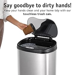 - Upgrade your home with the NINESTARS 2 Pack 13 Gal and 3.2 Gal Automatic Opening Touchless Sensor Trash Can Combo Set. This sleek and modern set features a 13 Gal (50L) and 3 Gal (12L) capacity, perfect for kitchens, offices, or any room in your home. The stainless steel base and black lid add a touch of sophistication, while the touchless sensor technology ensures hands-free operation for ultimate convenience. Say goodbye to unsightly trash cans and hello to a cleaner, more organized space with this 2 Pack Hands-free Large Garbage Bin from NINESTARS.