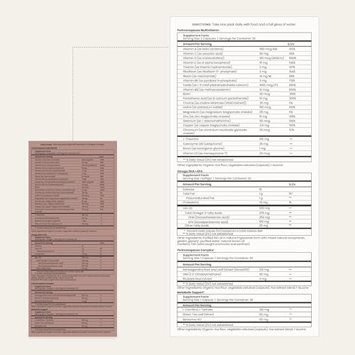 - COMPREHENSIVE SUPPORT WITH METABOLIC, OMEGA & PERIMENOPAUSE COMPLEX: Each daily sachet includes Metabolic Support capsules featuring green tea extract and berberine, an Omega DHA + EPA softgel providing essential fatty acids, and the Perimenopause Complex capsule with ingredients like DIM, rhubarb extract, and ashwagandha, all thoughtfully combined to support women during the perimenopause transition.