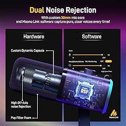 Improve 50% Sound Details: Compared with similar dynamic microphones with a 16-bit/48kHz sampling rate, MAONO PD100XS gaming mic adopts a frequency response of 48Hz-16KHz and a high 24-bit/48kHz sampling rate, Sound details improved by 50%, the podcast microphone conveys richer, clearer audio. Even in noisy rooms, PD100XS's customized cardioid capsule accurately captures clear audio with excellent ambient noise rejection so that you can immerse yourself in gameplay or streams Double Noise Cancellation: The gaming streaming microphone with boom arm uses a customized dynamic capsule and the latest self-developed algorithm to minimize the impact of ambient noise, thereby achieving the purpose of noise reduction. MAONO Link software noise reduction can freely adjust the noise reduction level to adapt to various usage environments, whether you're a gamer, streamer, or podcaster.(Note:The software noise reduction is only valid in USB connection mode) Controllable RGB Light: The USB XLR gaming microphone features a unique dynamic RGB design with 3 lighting modes and 9 color options. Customizable static, and dynamic RGB lighting effects briing you with a visually stunning game experience. You can also precisely adjust the RGB brightness according to the usage environment by Maono link to fit various environments. ((Only available for USB connection) USB/XLR Dual Connectivity:PD100X dynamic microphone is an all-in-one solution for multi-scenario microphone applications.The USB connection offers a convenience for creator beginner,work with desktop,laptop,ps4,ps5. Plug and Play, bringing you a clear seamless audio experience for games,streaming. The XLR output can be well-connected with your studio setup equipment, sound cards and mixers,providing you various types of studio music recording. (XLR Cable NOT Included) Quick Mute & 2 in 1 Knob Control:The podcast microphone with boom arm is equipped with one-touch mute and flexible smart knob, which independently controls mic gain and monitoring volume by tapping button to switch.The boom mic built-in 3.5mm headphone monitor jack offering a real-time gameplay, enabling a clear game voice chat and seamless teamwork with your teammates! ( Note: All control functions are only available in USB connection mode! ) Explore More with Maono Link Software:When connected by USB, you can experience more functutions, select preferred tone,mic gain adjustment, RGB brightness control,limiter, compressor and more.The software compatible with Mac OS,Windows. What You Get: Dynamic microphone x1, User Manual x1, USB-C to USB-A/C cable x1, Mic Boom Arm x1 (NOTE: XLR cable not included) - COMPATIBILITY: Widely compatible with Windows, Mac OS,PC,Laptop, PS4/PS5,Discord, audio mixer, etc.(NOT COMPATIBLE WITH iPhone 17 and XBOX) Scenario Application: Perfect for gaming,streaming,podcasting,vocal recording.