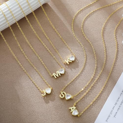 BERISO Gold/Silver Heart Initial Necklace for Women,14K Gold Plated CZ Heart Letter Pendant Necklace