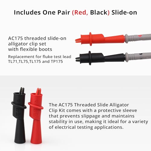 - Reliable Replacement: The AC175 is a reliable replacement for Fluke Threaded Slide Alligator Clip Kit, ensuring compatibility with Fluke multimeters for seamless functionality.