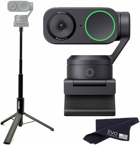 Insta360 Link 2-PTZ 4K Webcam with 1/2" Sensor, AI Tracking, Gesture Control, HDR, Noise-Canceling Mic, Webcam for Laptop, Live Streaming, Gaming (with Tripod Selfie Stick)