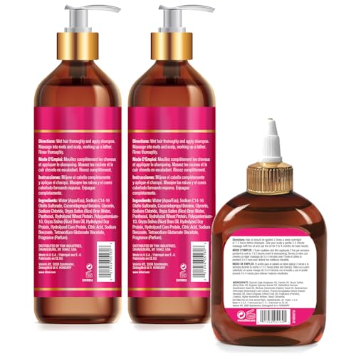 • 3-PC Shampoo, Conditioner and Hair Oil Set - Easy Difeel Packaging and Dispensing - Made in USA