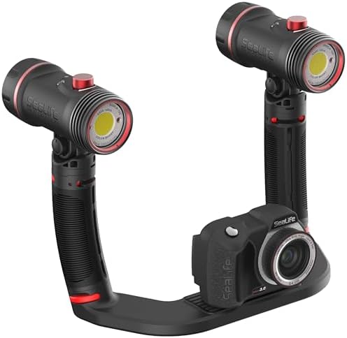 - 𝐅eatures - One button/dial control for easy operation, three light modes plus dial adjustable brightness, emergency signal mode, quick-release button, includes a Flex-Connect Ultra Dual Tray that holds larger cameras and housings, action camera adapter, two Grips, and two powerful 3000F Color Boost LED lights, depth tested to 330ft (100m)