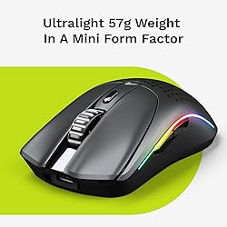 Compact and Ultralight: Weighing in at an 57 grams, the Model O 2 Mini Wireless is even lighter than its predecessor, offering effortless glide and enhanced maneuverability for lightning-fast reflexes and precise movements. Symmetrical Design: With a symmetrical design, this mouse is perfectly suited for all grip styles, whether you prefer palm, claw, or fingertip grip, ensuring maximum comfort and control, no matter your playstyle. 3 Ways to Play: Choose 2.4GHz wireless (110 hours of battery life), Bluetooth 5.2 LE (210 hours of battery life), or Wired Mode for uninterrupted gameplay while charging. Cutting Edge-Optical Sensor: The Model O 2 Mini Wireless is equipped with the BAMF 2.0 Optical Sensor, boasting an impressive 26K DPI for pixel-perfect tracking and pinpoint precision, allowing you to hit your targets with unmatched accuracy. Next-Gen Switches: The Model O 2 Mini Wireless features next-generation switches rated for 80 million clicks, providing exceptional durability and responsiveness, ensuring every click is executed with precision and reliability.