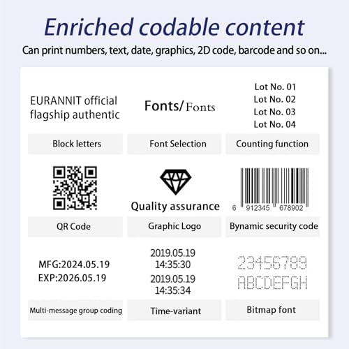 - FULL SET OF ACCESSORIES: 260E inkjet printer, optic sensor, 1pcs ink cartridge (black), bracket accessories, groundline, touch pen, U disk. (Eurannit provides complete and clear operation video tutorials and technical support.)