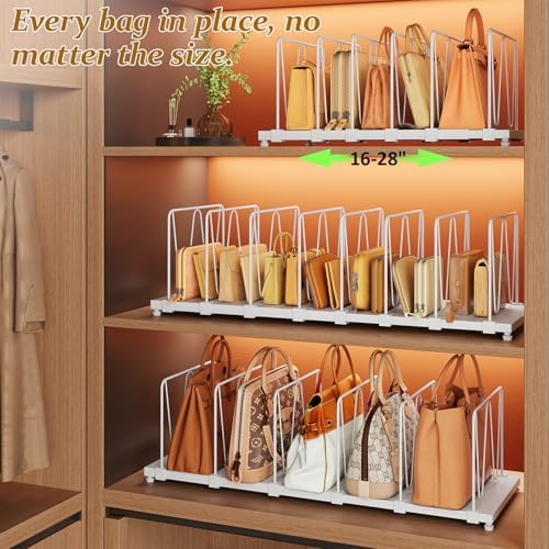 - 【Extendable Length Design】This closet purse organizer features an adjustable length from 16 to 28 inches, making it the ideal purse shelf organizer for any wardrobe or shelf. Maximize space and tailor your purse storage to fit small or large areas with ease.