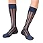 Professional Mens Nylon Dress Socks Middle Calf Length Stockings with Wide Striped Pattern Business Formal Suit Socks