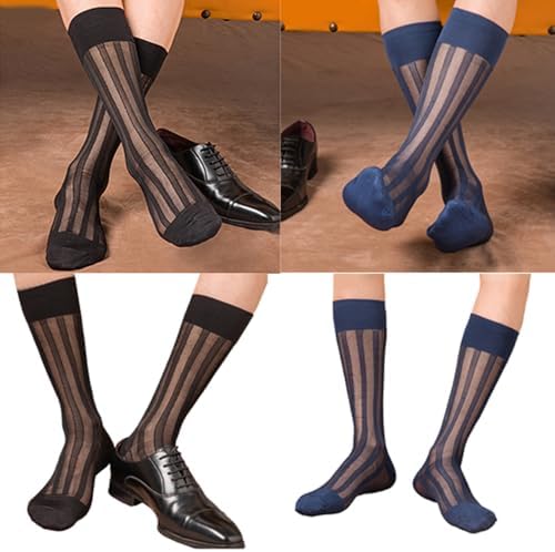 Features: Elevates your professional outfit with Mens Dress Socks, feature a sophisticated sheer that pair perfectly with business formal wear. Crafts from quality nylon fabric, these thin dress socks offer both durability and breathability, ensuring comfort during those long office hour or important meetings. Great for the discerning gentleman, these socks are great to meet the needs of professional who value both fashion and substance in their wardrobe essential. Whether attending a corporate event, engaging in daily office work, or participating in formal gatherings, these sheer dress socks is great for any business occasion. The wide striped pattern of dress socks not only complements a formal suit but also adds a touch of elegant, making them a great accessory for the modern businessman. Specifications: Component: Chinlon Recommended Foot Size: 35-47 Optional Color: Navy Blue, Black Quantity: 1 pair(2pcs) Note: Please allow 1-3cm error due to manual measurement. please sure you not mind before you bid. Due to difference between different monitors, the picture may not reflect the actual color. Package includes: 1 pair(2pcs) Socks