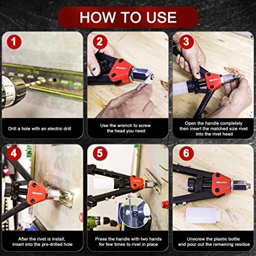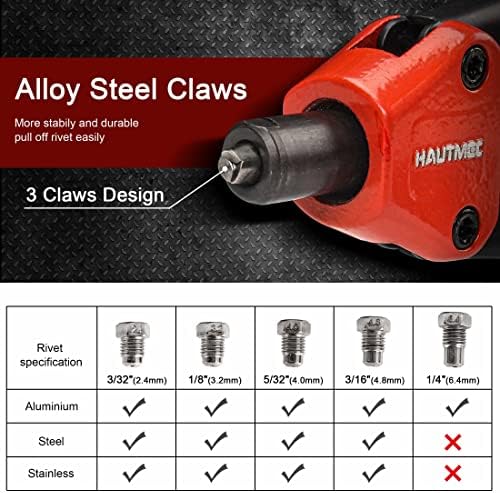 - Wide Application: Can fit rivets that are made from various materials such as steel, stainless steel and aluminum rivets. It can be widely used for automotive, aviation, railway, elevator, instrument, furniture, and DIY.