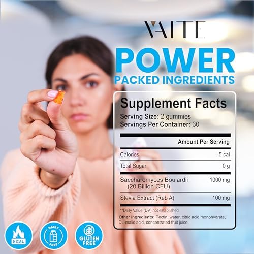 Saccharomyces Boulardii Probiotics 500mg - Gut Health Supplements & Candida Support, Probiotic for Women & Men, Digestive & Immune Supports, Supplement, Non-GMO, Gluten Free, 60 Vegan Gummies