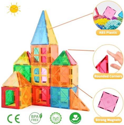 - 【STEAM TOY FOR FUTURE INNOVATORS】A true STEAM (Science, Technology, Engineering, Art, and Math) toy, these magnetic building toys tiles spark creativity and logical thinking. Kids can experiment, design, and build structures while exploring the principles of engineering and architecture.